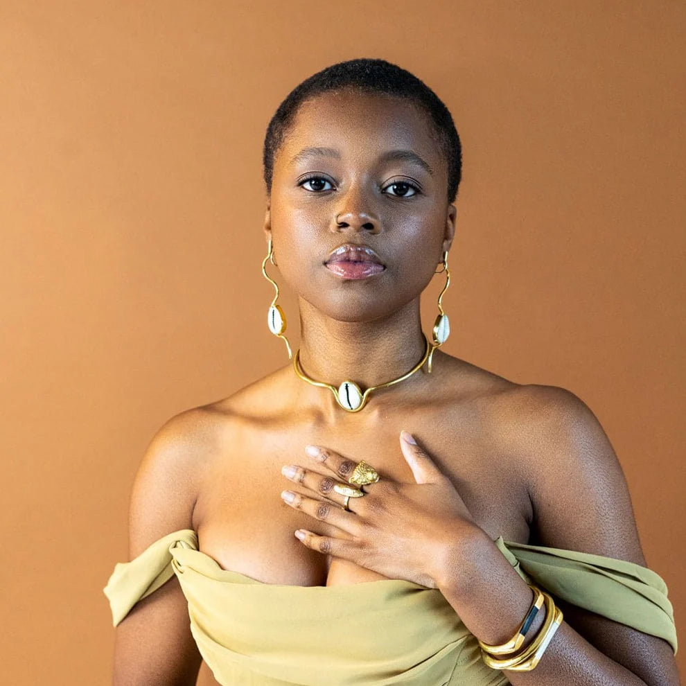 Kaurischnecken-Recycelte Messing-Statement-Ohrringe