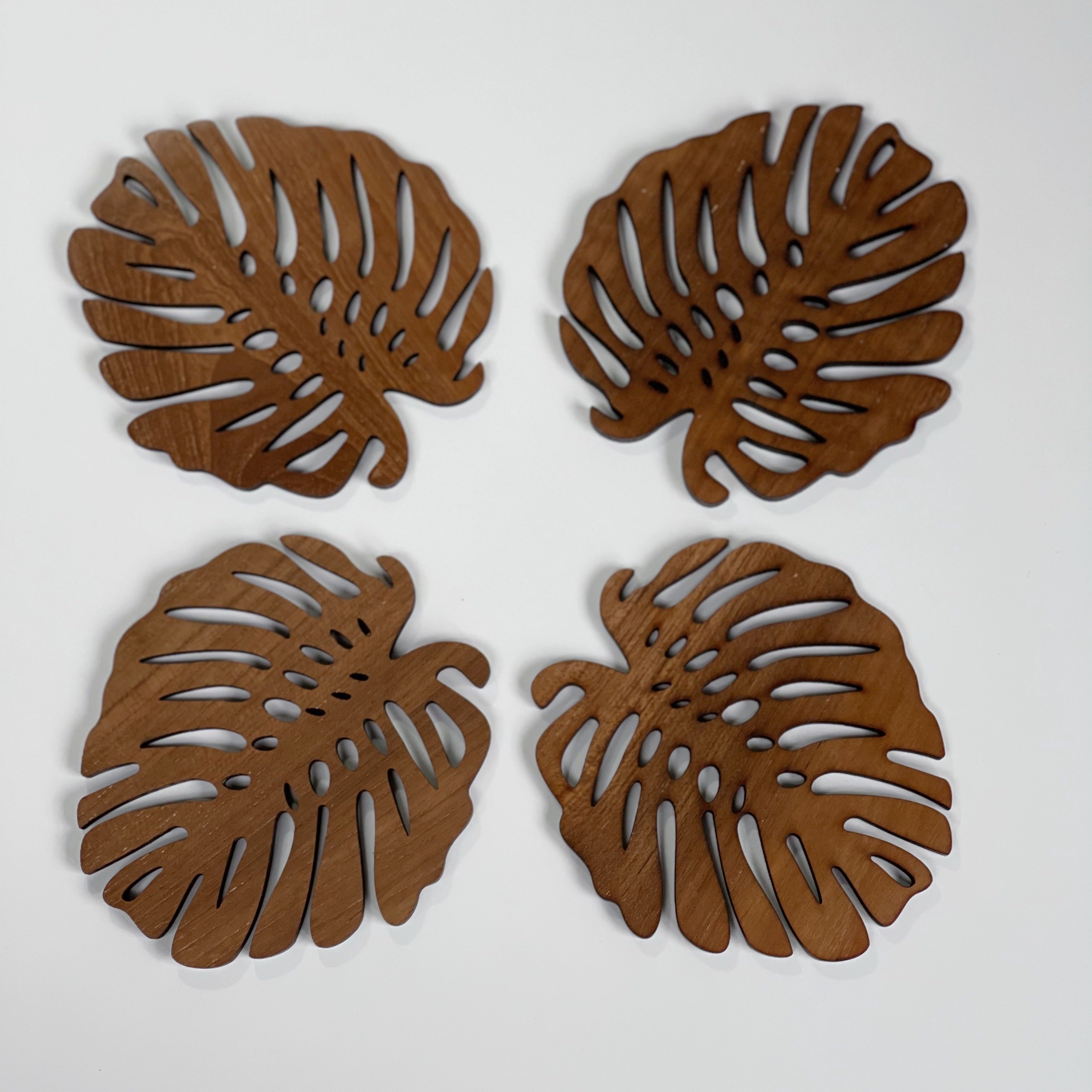 Monstera Upcycled Teakholz Untersetzer - 2er oder 4er Set