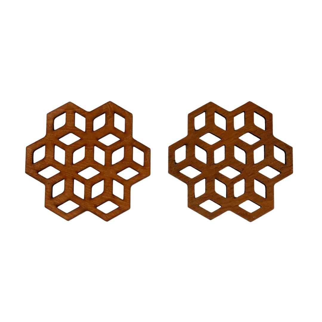 Cubix Geometric Upcycled Teak Wood Coasters - Set of 2 or 4